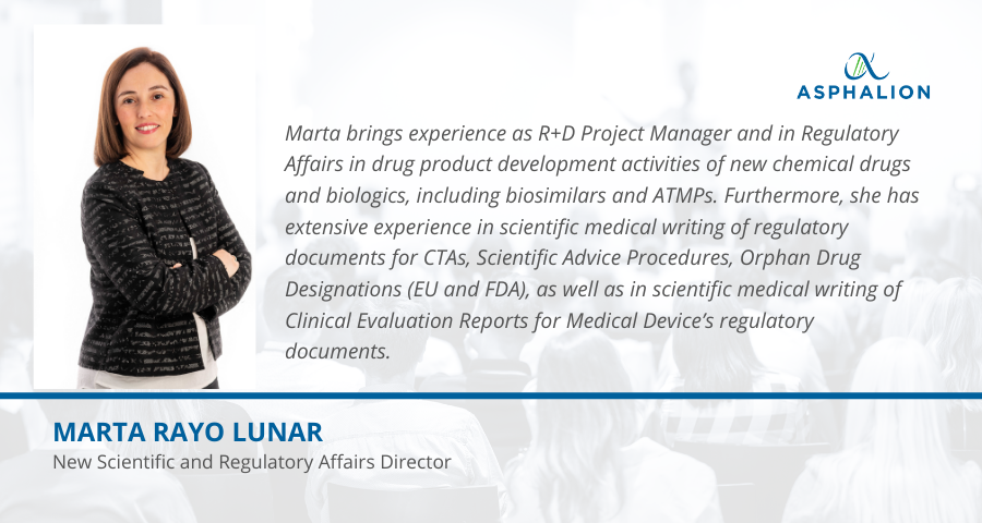 Asphalion’s Board of Directors is pleased to announce the appointment of Marta Rayo Lunar as new Scientific and Regulatory Affairs Director.